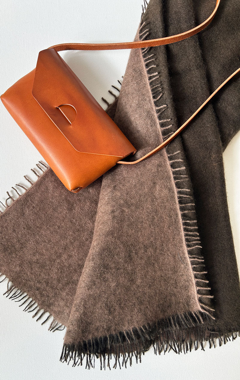 This long scarf by Kas is two toned with a light brown cocoa color underneath.