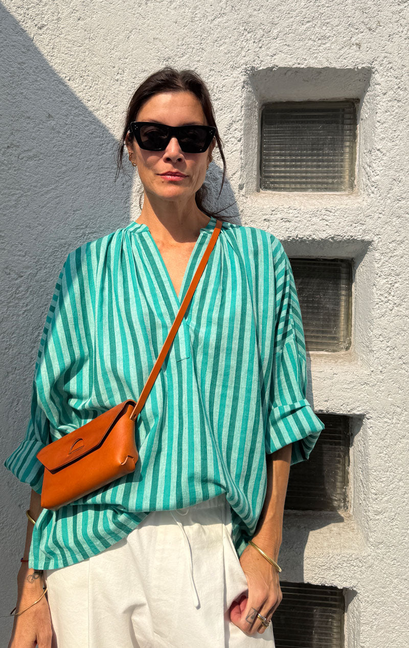 Opaque stripe in vibrant greens, soft handwoven fabric.