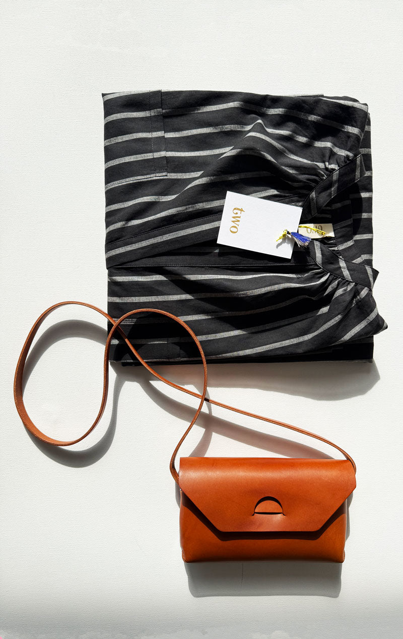 We first discovered these handmade bags last summer in St.Tropez and we were smitten! Adjustable straps with a sleek envelope closure. The petit fits a phone , keys and a thin wallet, a perfect on the go bag. built to last forever. seamless finishes. artisan made.