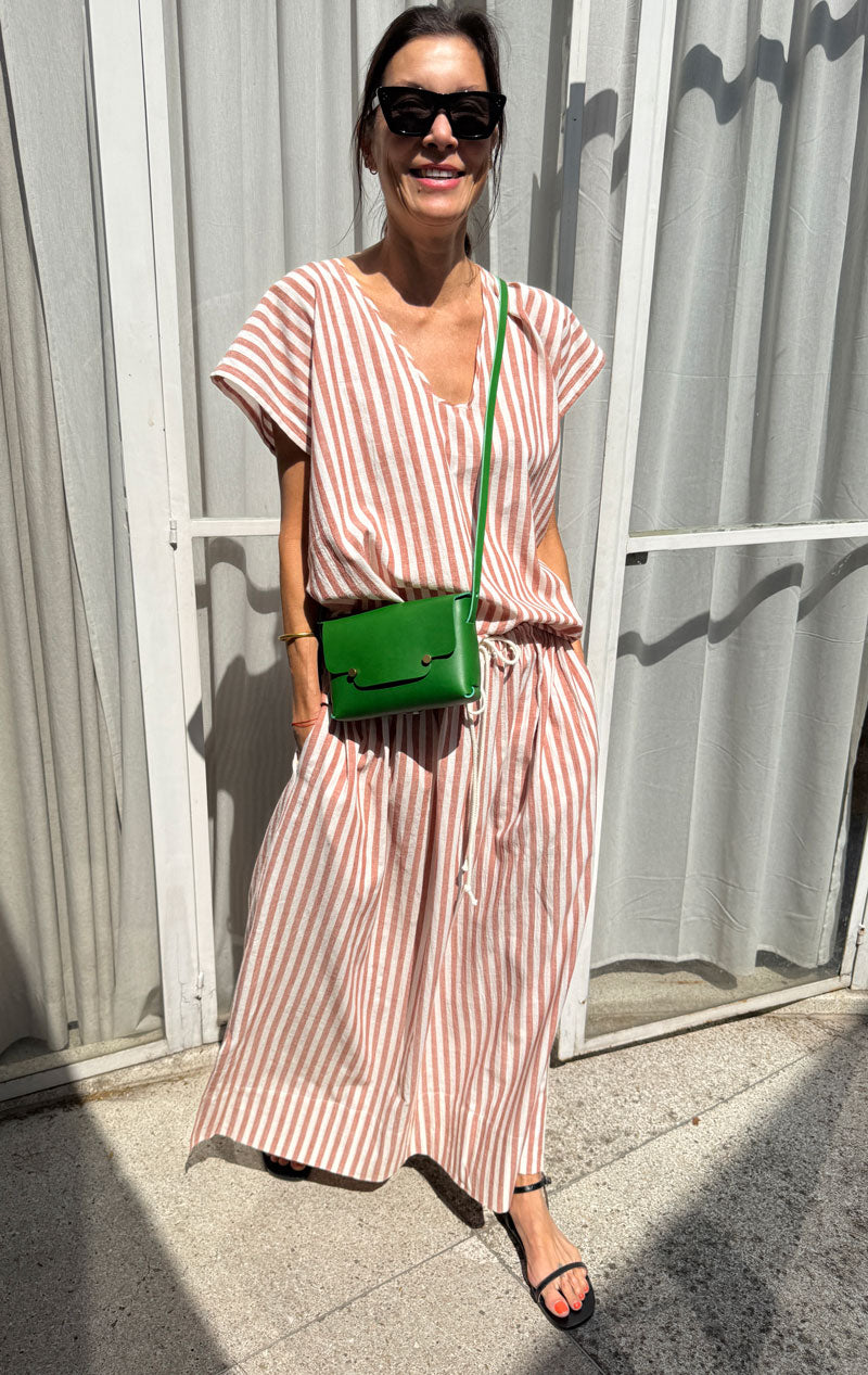We work primarily with natural fibers. Our fabrics are hand loomed and do require a gentle hand. We recommend hand washing in cold water with a gentle soap; line dry and iron. If your item has embroidery, please dry clean it to best preserve it. Please spot clean if an option with gentle soap. We recommend trying a neutral detergent.