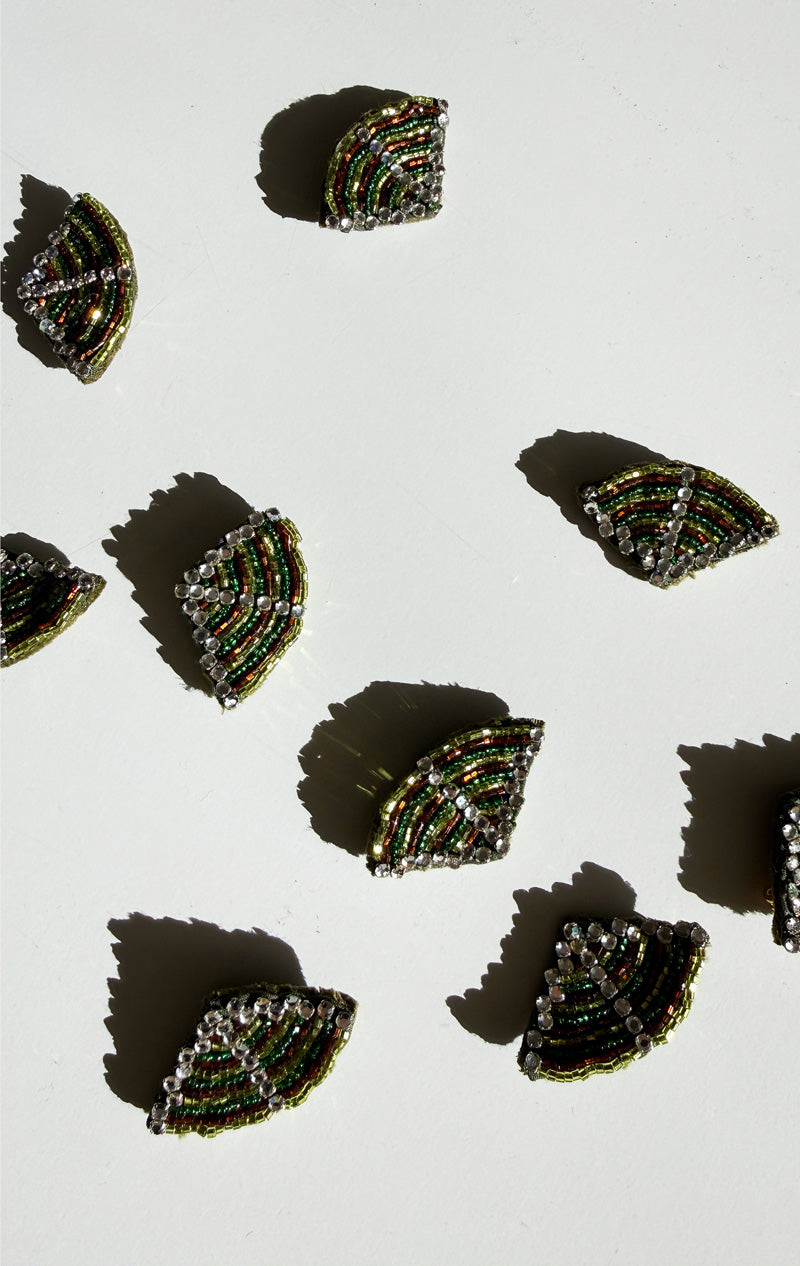 These Italian crystals came from my mother's arsenal of trims . She had a chic store of Italian & French designers. These have been in our closet for decades. I started wearing mine on my sweaters and sweatshirts and they truly are special. We've  now turned them into brooches with a velvet back. It is a limited edition of 10. These crystals are from Circa 1975. They add a bit of chic disco to anything! We may just need that in 2026.