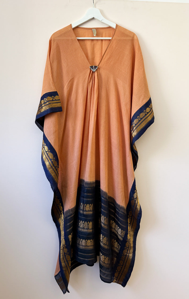 For one of a kind, authentic sari pieces please note these comes from many different sources and are found objects. To avoid any color transfer use extremely cold water for a quick hand wash, do not let the garment sit for time. Rinse it repeatedly with quick movements is best.  To soften your garment use softener with water and do 3-4 quick rinses to eliminate starch. These voile saris are often worn with starch and thus it is in the fabric and will slowly wash out and get incredibly soft.