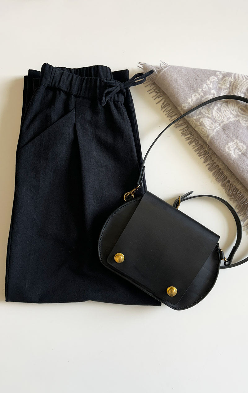 La Pilule is inspired by the design and architecture of the 30s and 50s. Without frills, it has no unnecessary linings. It combines simplicity, robustness and minimal design. Its "mini" format makes it an everyday companion. It can be worn as a clutch or with a 130 cm adjustable and matching shoulder strap.  Sewn with saddle stitch with matching linen thread, it takes on a magnificent patina over time. round closure opens when you pull it outwards.